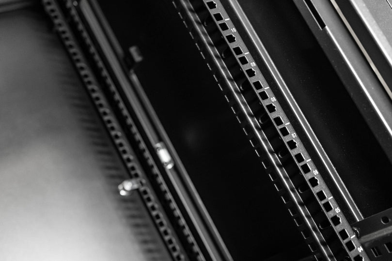 Racks: Supplied with depth adjustable heavy-duty steel mounting profiles to take industry standard 19’’ patch panels and equipment.