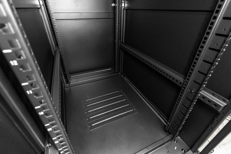 Racks: Supplied with depth adjustable heavy-duty steel mounting profiles to take industry standard 19’’ patch panels and equipment.