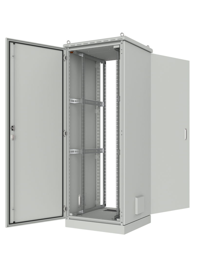 The IP55 Outdoor cabinets are designed for industrial applications. Providing IP55 protection against dust and water ingress. Applications include open areas subjected to falling dirt and wind-blown dust particles, rain, snow or splashing water.