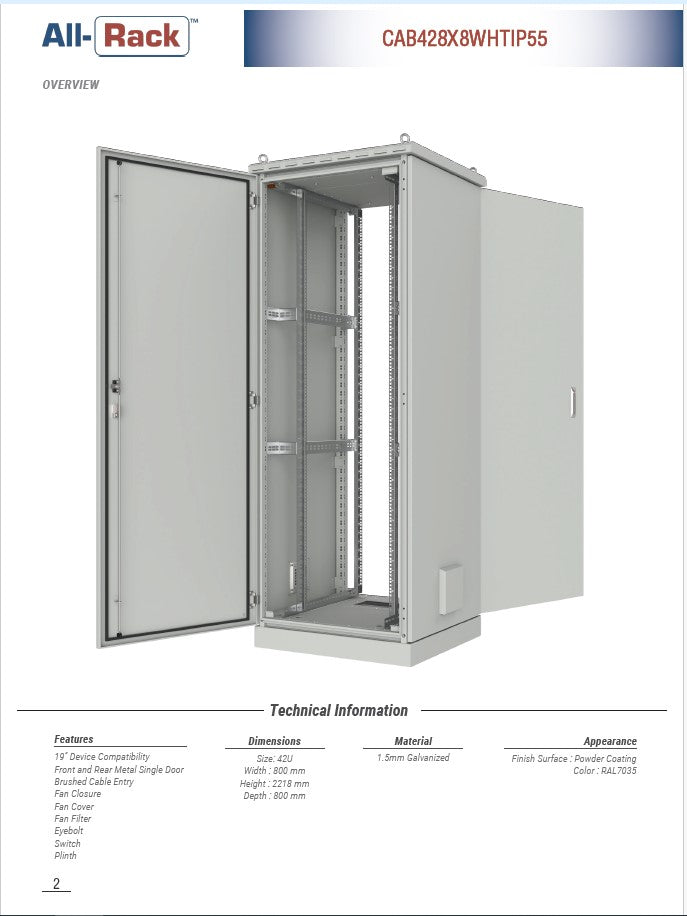 All-Rack IP55 Floor standing Data Cabinet 42U 800mm Wide X 800mm Deep