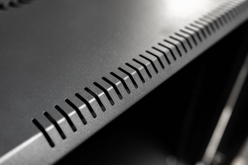 Ventilation: Side panels vented. The roof has a cutout for 2 fan units top be mounted directly