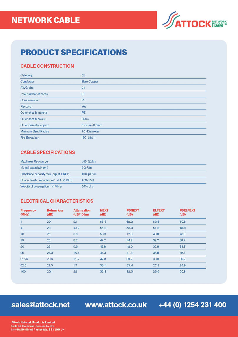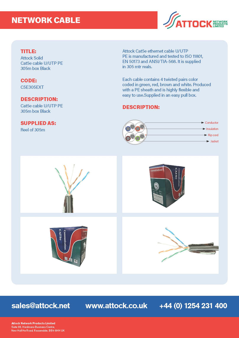 The Attock Category 5e external cable ideal product to run between two buildings where it is exposed to the elements. Also suitable for use with Catenarys , in ducts or externally on the side of buildings. This cable exceeds TIA Enhanced Category 5 Specifications.